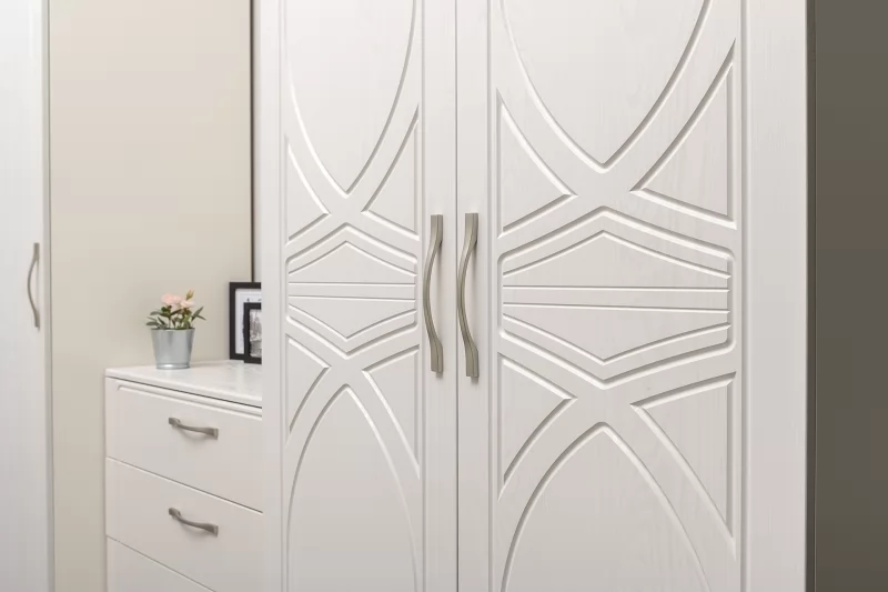 Шкаф для одежды Неаполь 13.330 предоставит достаточно места для размещения и бережного хранения вашего гардероба. За двумя распашными дверьми находится штанга для вешалок-плечиков с красивыми платьями, деловыми костюмами и рубашками, а полки пригодятся для аккуратного размещения другой одежды, нижнего и постельного белья, разнообразных аксессуаров. Нежная мебель Неаполь выполнена в современном классическом стиле.
