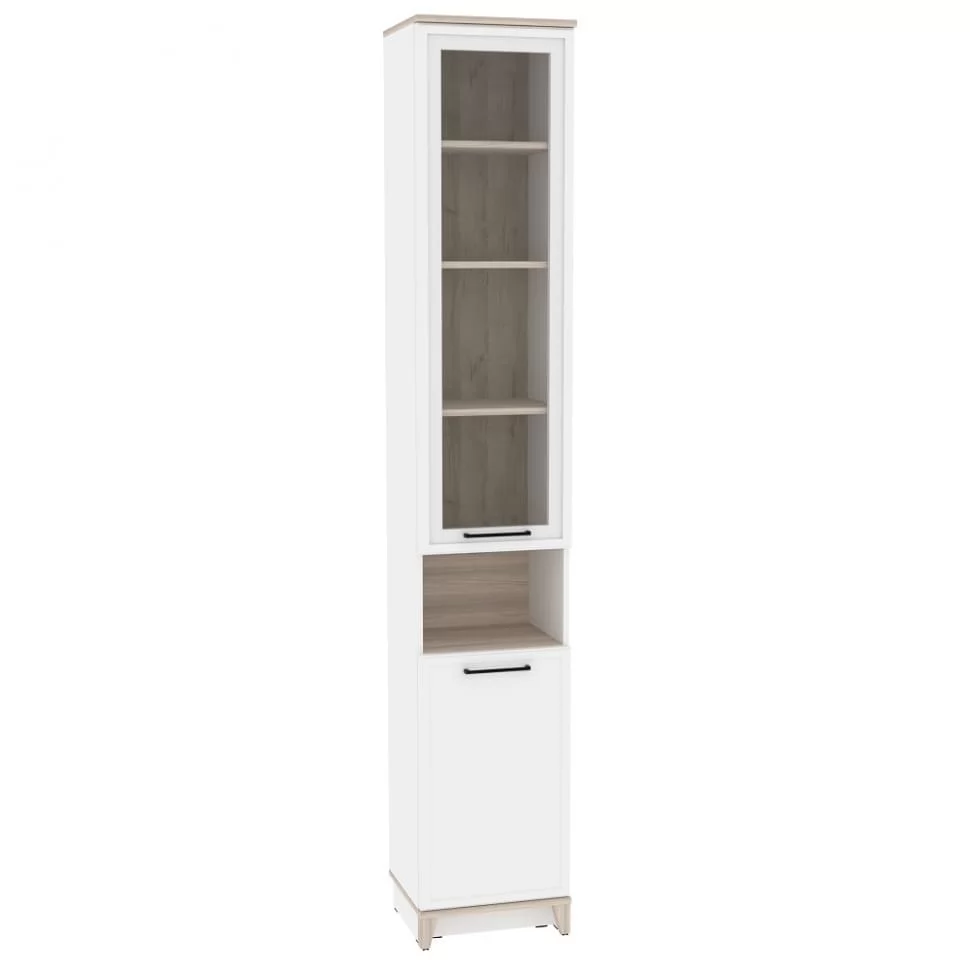 Мебель AURELIO представляет собой классическую мебель в современном исполнении. Корпус мебели изготовлен из высококачественного ЛДСП толщиной 16 мм, что обеспечивает прочность и долговечность конструкции. Фасады выполнены из МДФ с применением профиля, что придает им изысканный и стильный вид. Особое внимание стоит уделить рамочным фасадам шкафов, которые украшены стеклянными вставками и металлическими черными ручками. Это сочетание материалов придает мебели особый шарм и элегантность.