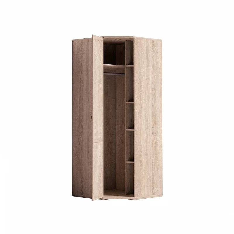 Шкаф угловой Sherlock оснащен верхней полкой и штангой для вешалок-плечиков под ней, а также четырьмя небольшими боковыми полками для одежды и белья. Такой шкаф не только идеально впишется в любой интерьер вашей комнаты, но и поразит вас своей практичностью и вместительностью. Угловой шкаф оснащен стационарной штангой длиной 81 см, полочками для белья и беспроводным светодиодным светильником, который включается при открывании двери. Установить такой светильник стало еще проще, потому что он крепится на крышку шкафа на магнитах - и не нужно возиться с проводами!