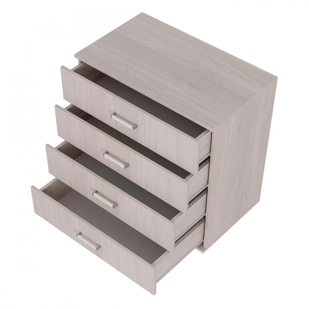 Классический комод Белла КМ-02 можно использовать как отдельно, так и в коллекции спального гарнитура. Удобная система хранения для одежды, постельных принадлежностей или других хозяйственных аксессуаров состоит из четырёх просторных выдвижных ящиков с ручками на роликовых направляющих. Максимальная нагрузка на ящик - 10 кг. Высокое качество по доступной цене – это комод Белла КМ-02 ясень белый.