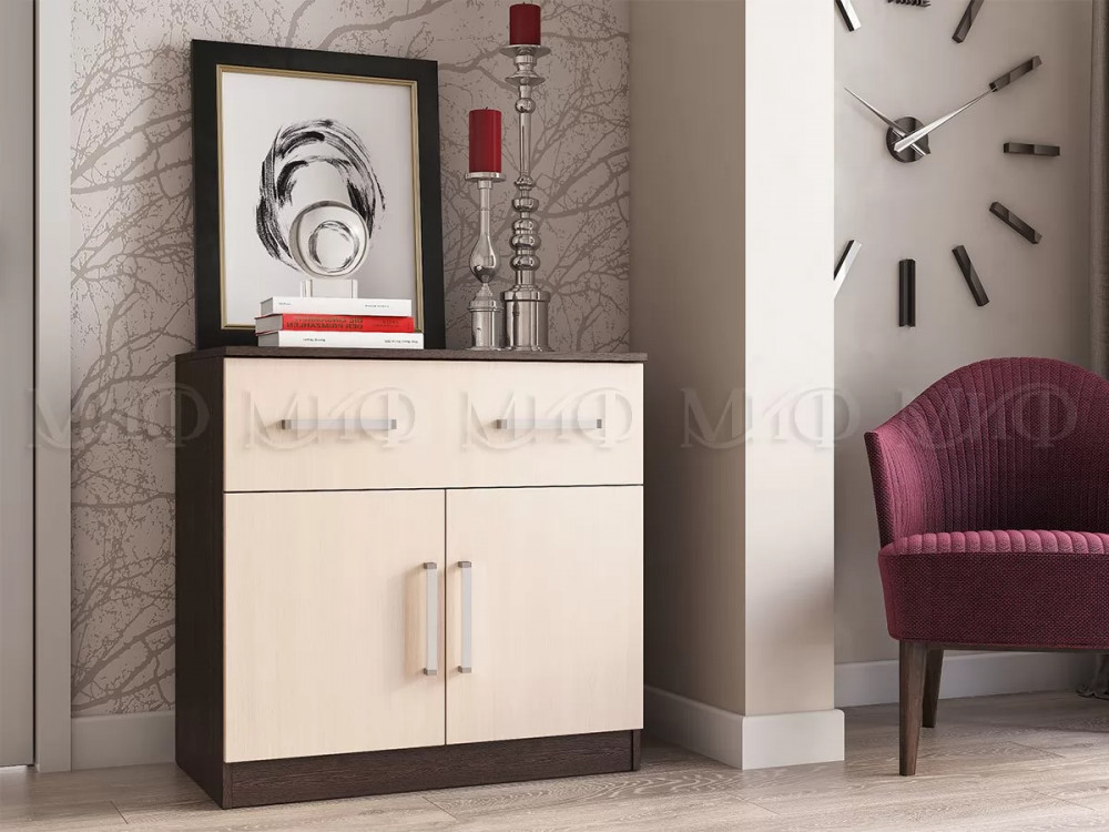 Комод с ящиком 2-мя дверьми Басямиф, дуб беленый/венге в Увате