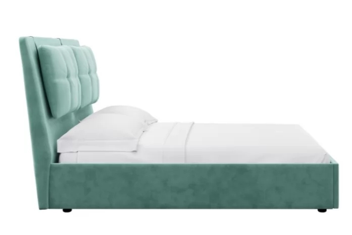 Кровати выполнены в нейтральных и в ярких тканях велюр, что позволяет подобрать подходящий вариант почти под любой интерьер. В качестве декора применяются декоративные подушки на изголовье.