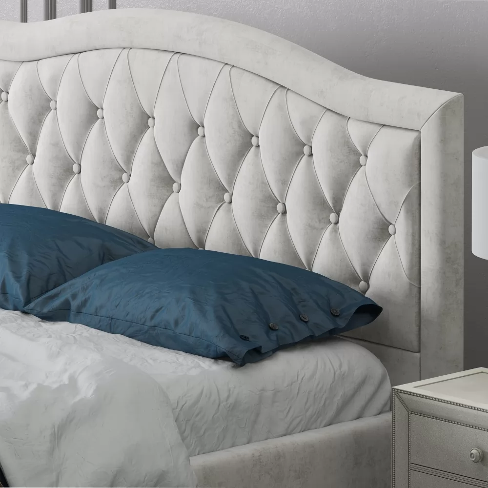 • Объемная спинка дизайном в виде каретной стяжки придает кровати роскошный вид.