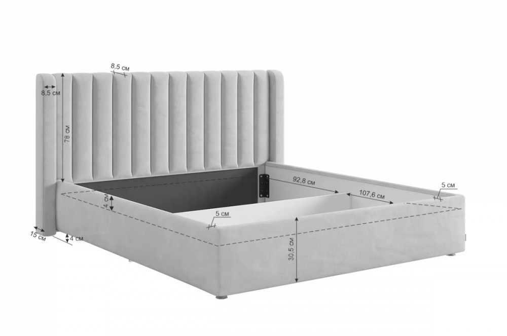 Кровать с ПМ «Лора» (с подъемным механизмом) с заглушиной Велюр Confetti Smoke