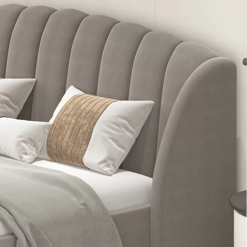 Особенностью данной кровати является закругленное изголовье, которое подчеркивает изысканность интерьера спальной комнаты. Кровать станет показателем индивидуальности и тонкого вкуса. Идеально подойдет для интерьеров в современном стиле.