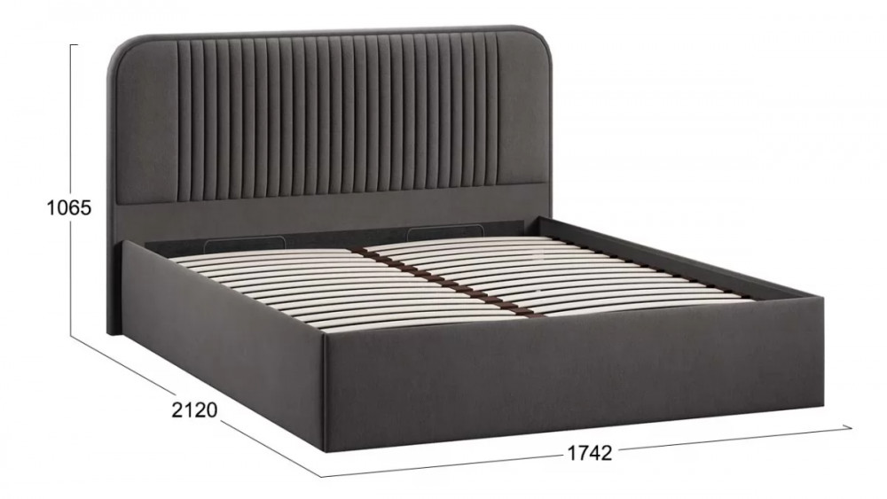 Спальное место - длина: 2 000 Назначение: Мебель для сидения и лежания Наличие подъемного механизма: Да Отсек для хранения: Да Гарантийный срок: 18 месяцев Комната использования: Спальня Тип спинки: Мягкая Стиль: Современный Габаритная длина: 2 120 Тип: Кровать Расположение: Напольный Материал каркаса: ДСП Спальное место - ширина: 1 600 Производство: Россия Отделение для белья: Да Основание кровати: Ламели Габаритная ширина: 1 742 Габаритная высота: 1 065 Форма предмета: Прямоугольный Тип кровати: Двуспальная Модель: Тиффани Срок службы: 10 лет Оттенок: Серый Цвет: Велюр Графит Обивочный материал: Велюр Vivaldi Обивочный материал (изголовье): Велюр Vivaldi Наличие механизма раскладки: Нет Наличие спального места: Нет Заглушина ящика кровати в комплекте: Да Коллекция обивочного материала: Vivaldi 37