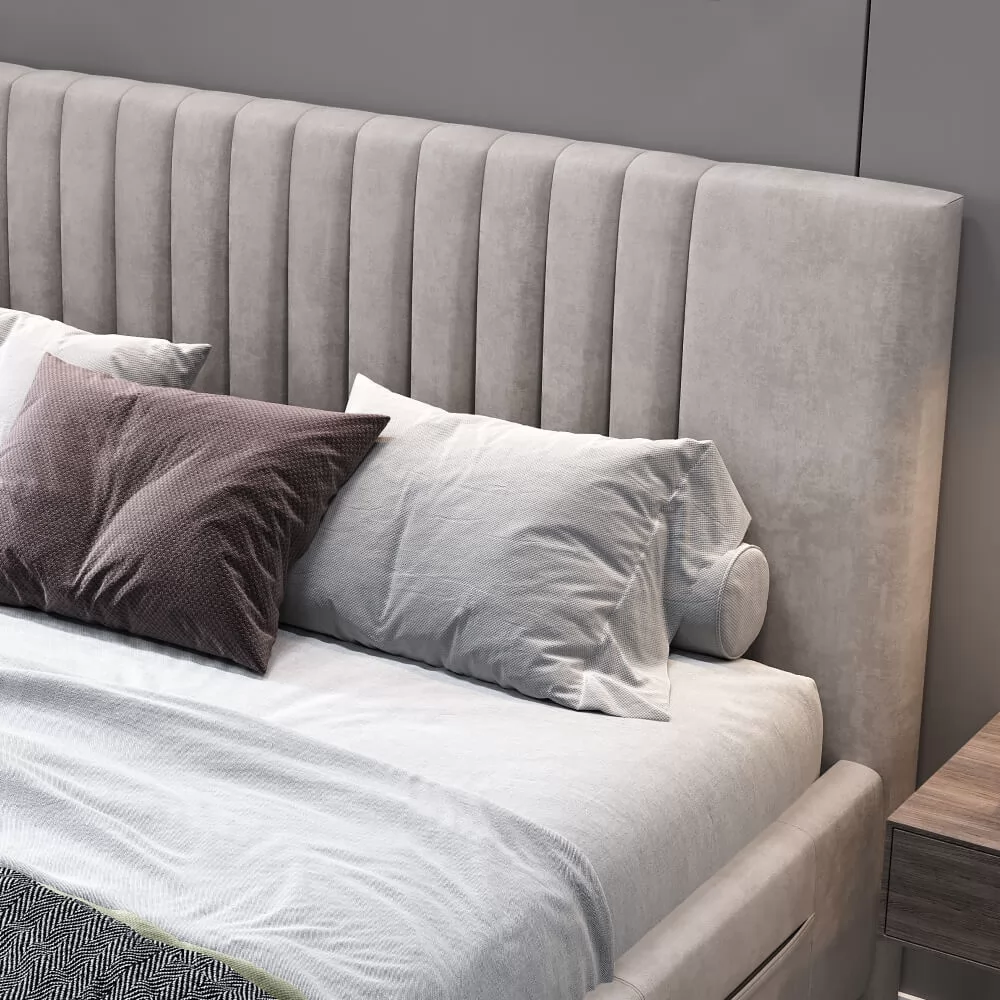 Дизайн с вертикальными линиями изголовья, разбавят монотонность интерьера.