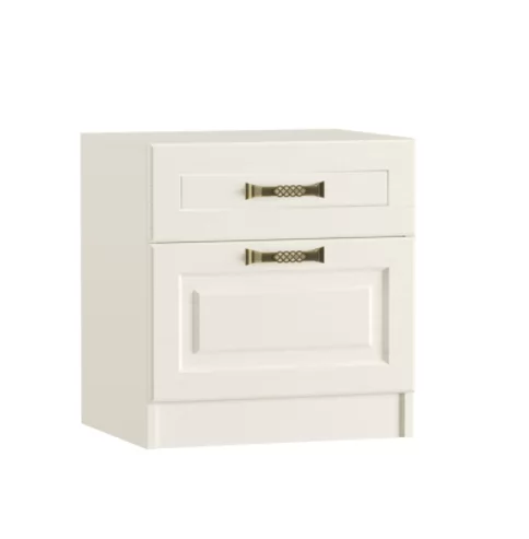 Прикроватная тумба "Ливерпуль" №08.146 включает в себя выдвижной ящик и объемную нишу за распашной дверцей.
