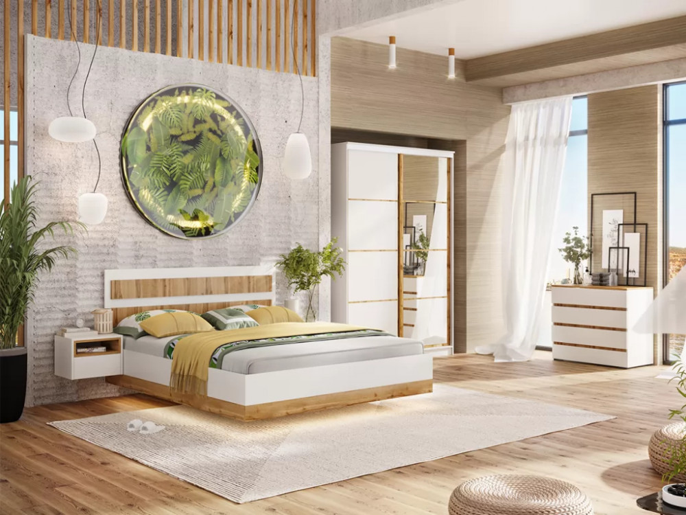 Спальный гарнитур Дубай Белый жемчуг/Дуб Вотан в Увате
