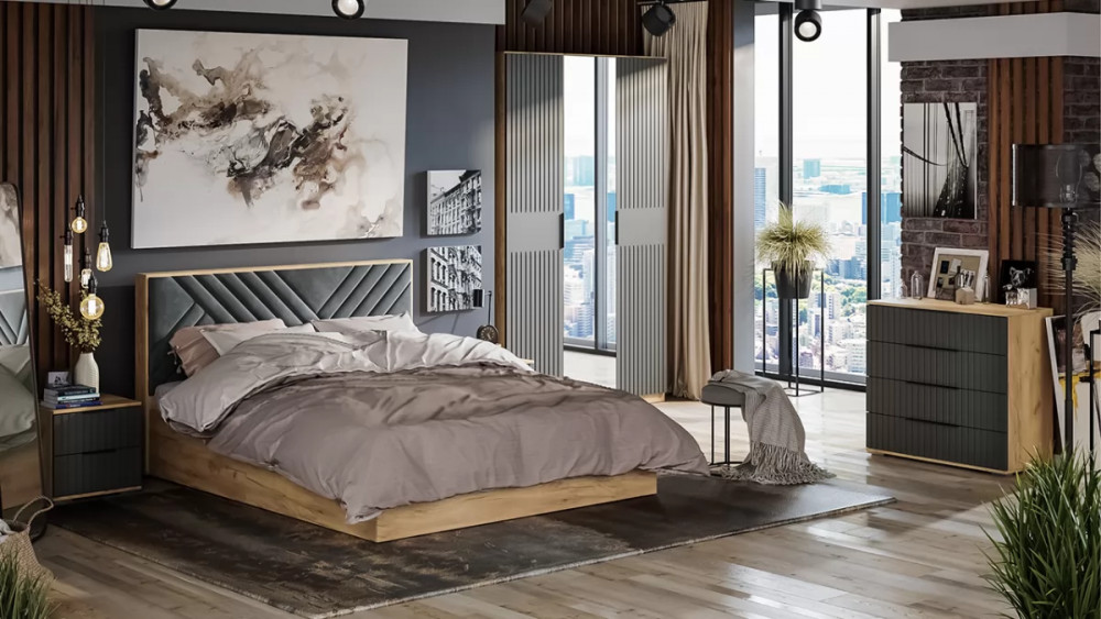 Спальный гарнитур «Хилтон» №1 Дуб Крафт золотой, Графит матовый в Увате