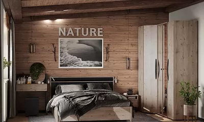 Простые прямые линии, отсутствие сглаженных углов и лишних изгибов придают спальне NATURE особую атмосферу стиля Лофт.