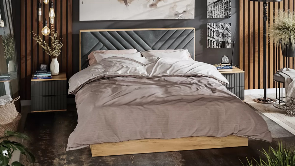 Спальня «Хилтон» Дуб Крафт золотой, Графит матовый в Увате