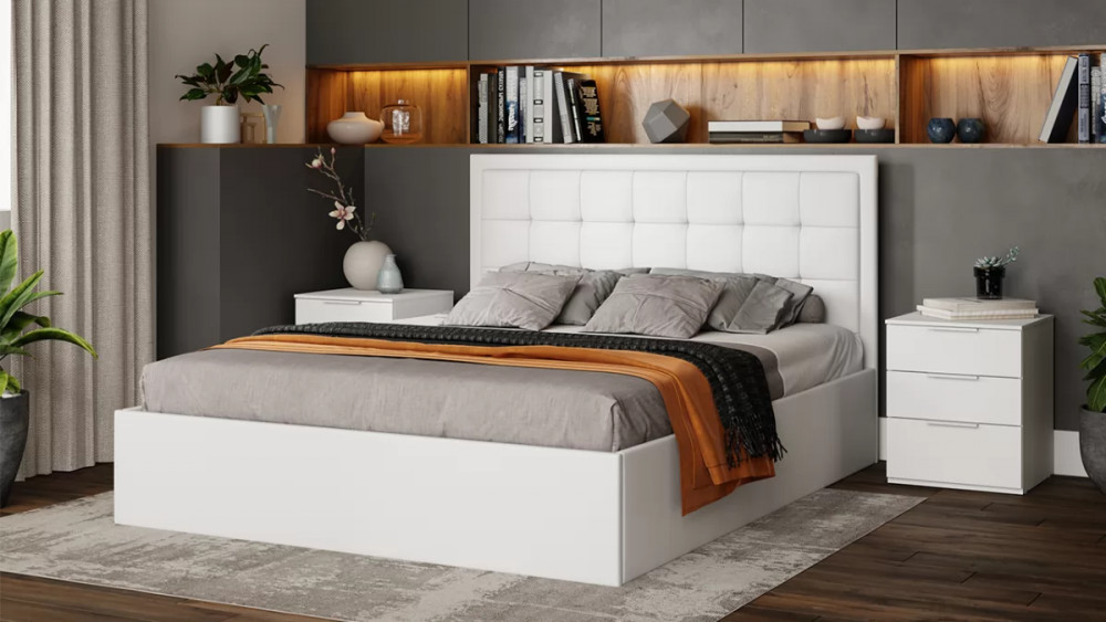 Спальня «Порто» Белый Жемчуг, Яблоня Беллуно, Белый софт в Увате