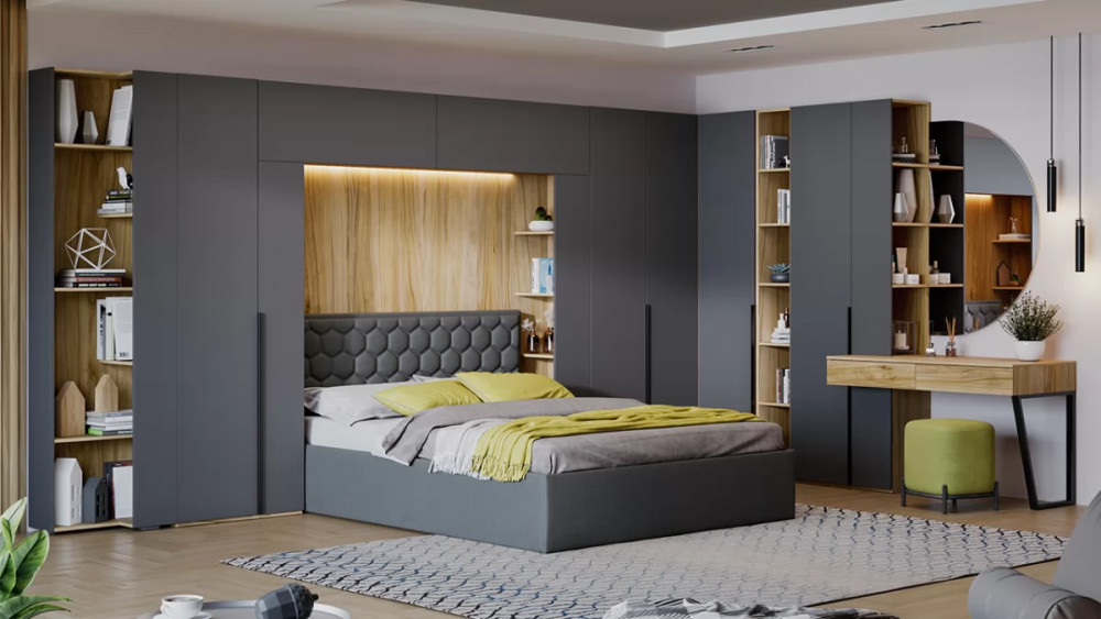 Спальня «Порто» Яблоня Беллуно, Графит софт в Увате