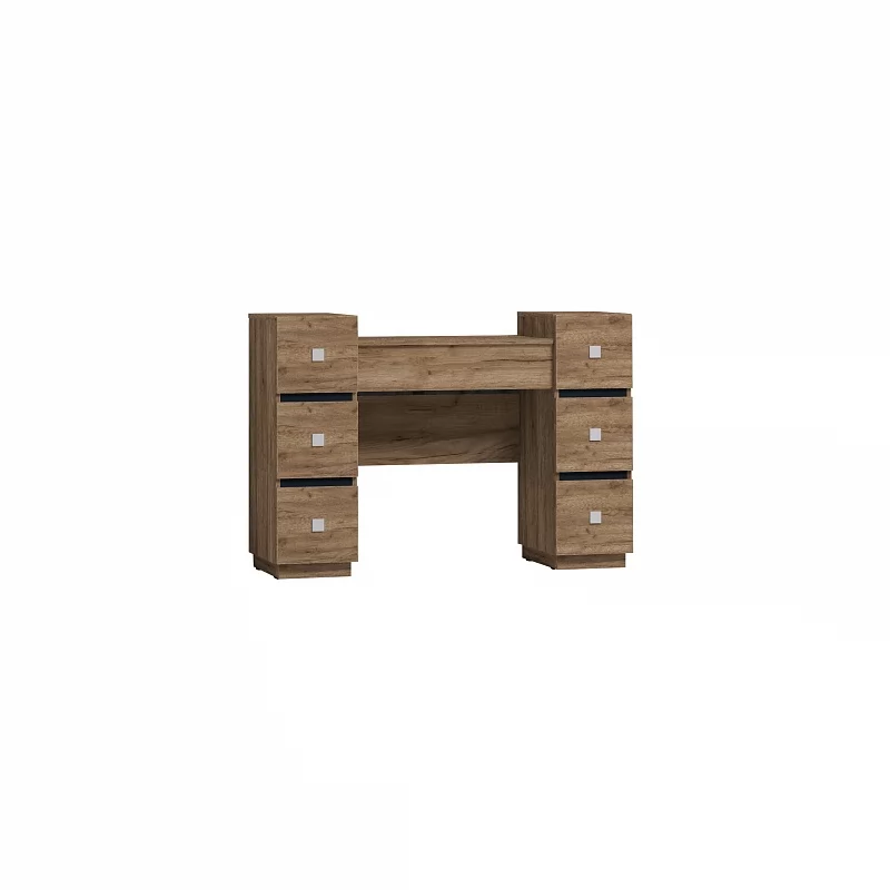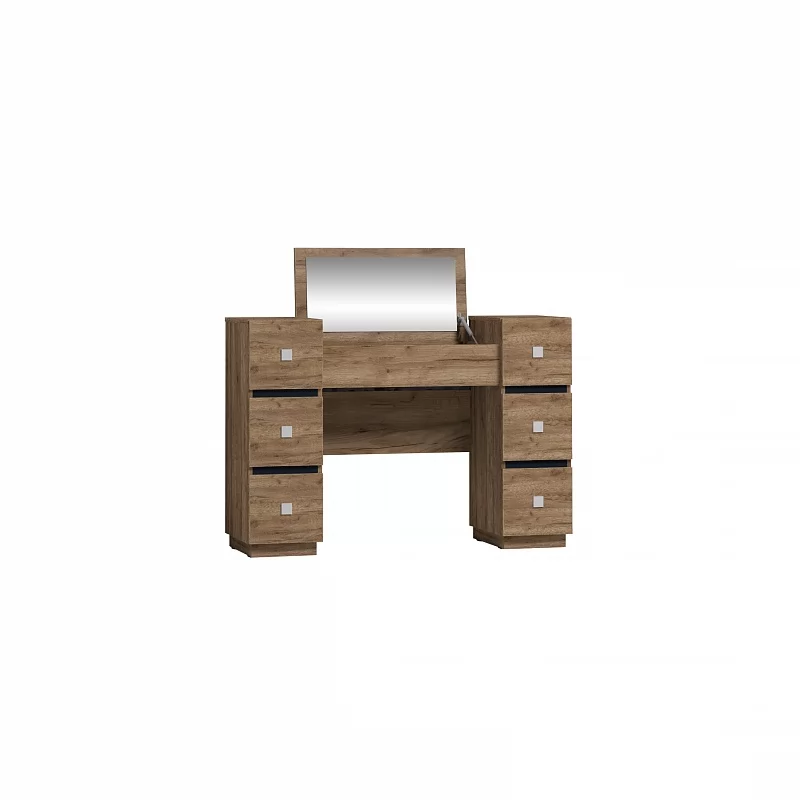 Туалетный столик просто необходим красивой женщине, которая привыкла за собой ухаживать не бегом, в ванной или прихожей, а обстоятельно. Стильный и функциональный он не займет много места в маленькой спальне. Разместите его в спальне у окна, и лучший естественный свет вам обеспечен. Откидная крышка стола с зеркалом скрывает нишу с делителем для хранения мелких аксессуаров, а в 6-ти выдвижных ящиках, глубиной 30 см, высотой 15 см и шириной 20 см, найдется место для множества баночек и флакончиков. Кроме того, ящики оснащены шариковыми направляющими, что обеспечивает их движению плавных ход и минимальный люфт.