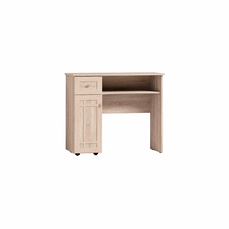 Туалетный столик с тумбой и выдвижным ящиком - самый удобный, вместительный и при этом скромный по габаритам вариант. Небольшой ящик на шариковых направляющих полного выдвижения. Они обеспечивают максимальный доступ к содержимому ящика и плавность его хода. Количество ящиков можно увеличить: установить на столешницу Sherlock 54 Ящики. За рамочным фасадом просторная ниша с полкой, регулируемой по высоте. Полка под столешницей с фигурным вырезом позволит комфортно сидеть за столиком человеку высокого роста. Сам по себе туалетный стол соответствует по высоте нормам ГОСТ и может использоваться как письменный или для работы с ноутбуком. Зеркало докупается отдельно.