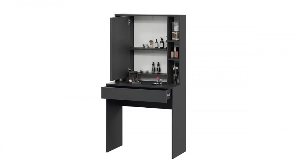 Назначение: Мебель для работы и приема пищи Отсек для хранения: Да Количество дверей: 1 Зеркало: Да Гарантийный срок: 24 месяца Комната использования: Спальня Материал кромки каркаса: ПВХ Стиль: Современный Тип: Туалетный столик с зеркалом Расположение: Напольный Тип направляющих ящиков: Шариковые Материал каркаса: ЛДСП Дополнительная информация: Размер двери с зеркалом 680х474 мм. Производство: Россия Габаритная ширина: 800 Габаритная высота: 1 528 Форма предмета: Прямоугольный Габаритная глубина: 404 Количество ящиков: 1 Количество полок ЛДСП: 6 Модель: Салли Срок службы: 5 лет Материал фасада: ЛДСП Оттенок: Темно-серый Цвет: Антрацит Цвет каркаса: Антрацит Цвет фасада: Антрацит Оттенок каркаса: Темно-серый Оттенок фасада: Темно-серый Тип сборки: Не универсальный Наличие механизма раскладки: Нет Наличие спального места: Нет