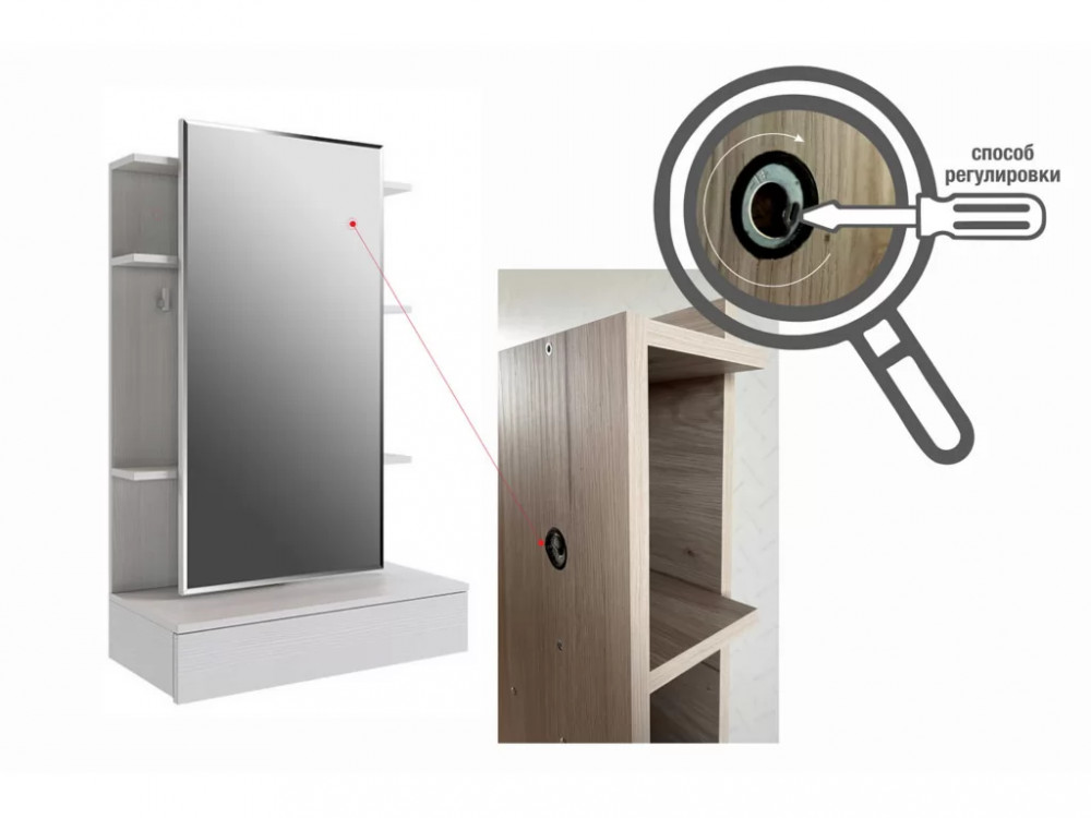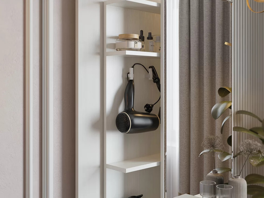 Дополнительные полки и крючки за зеркалом.